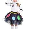 This is a simple-to-wear black bodysuit in a sleek, black fabric, so your gal will look well-groomed when she hits the streets to trick-or-treat! The costume boasts cute faux-fur accents at the torso, ankles, and 3/4 sleeves, as well as a sweet kitty tail in back. Little cat ears, whisker face paint, and of course, a serious dose of catitude will polish off her hip cat costume to perfection! Now how can you say she’s unlucky when she happened on a costume like this?