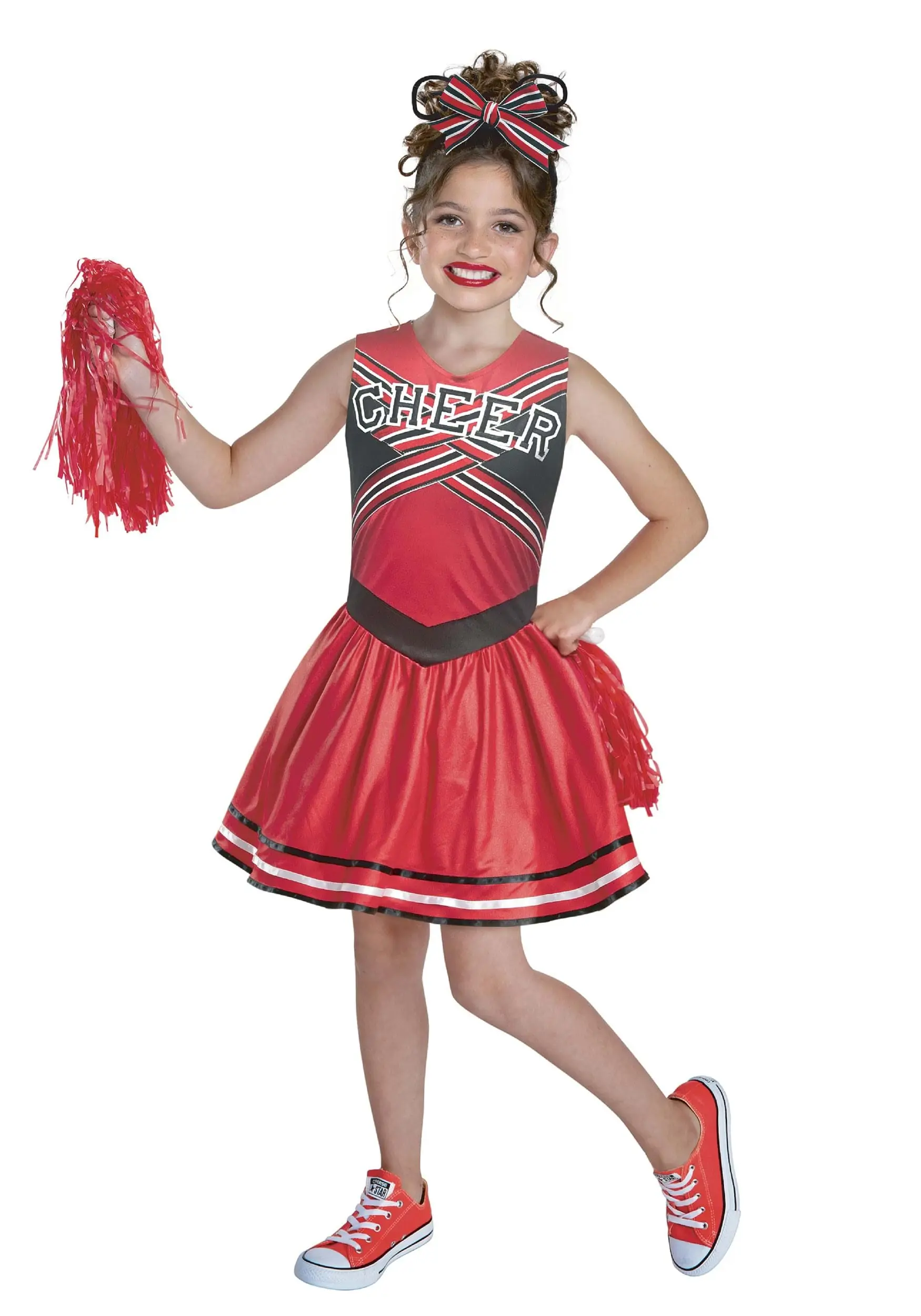- Bodice front has appliqued letters that spell “CHEER” over striped grosgrain ribbon