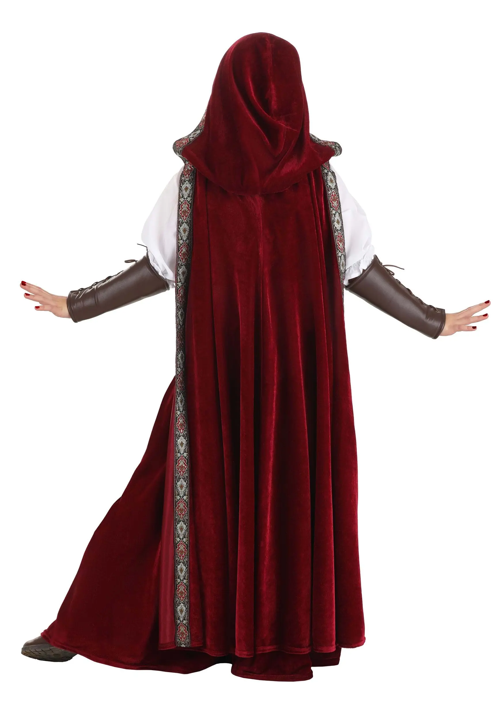 - Cape has brocade ribbon trim along hood & front edges