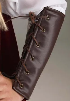 - Faux leather gauntlets have cord lacing through metal eyelets