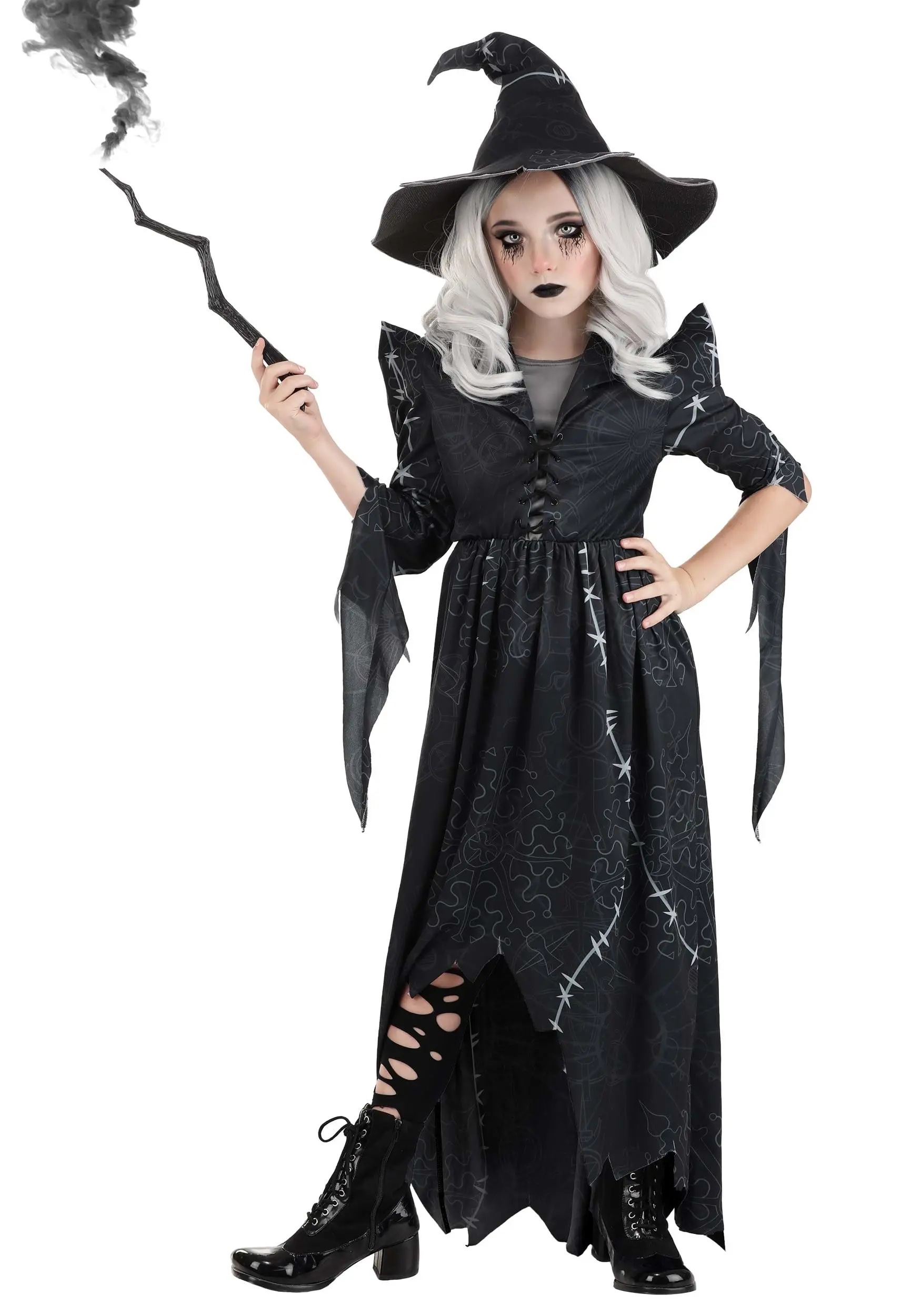 This is an exclusive Kid’s Gothic Stitch Witch Costume.