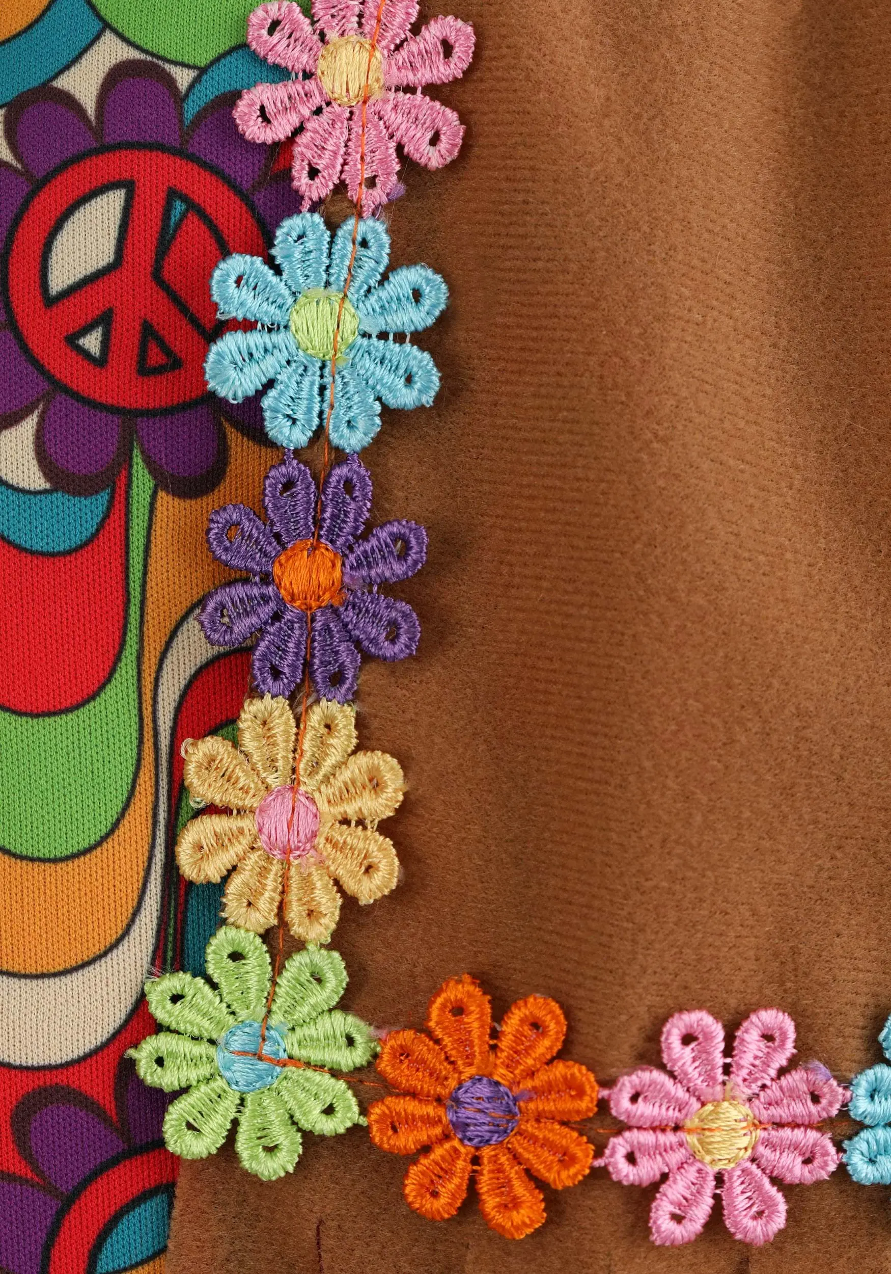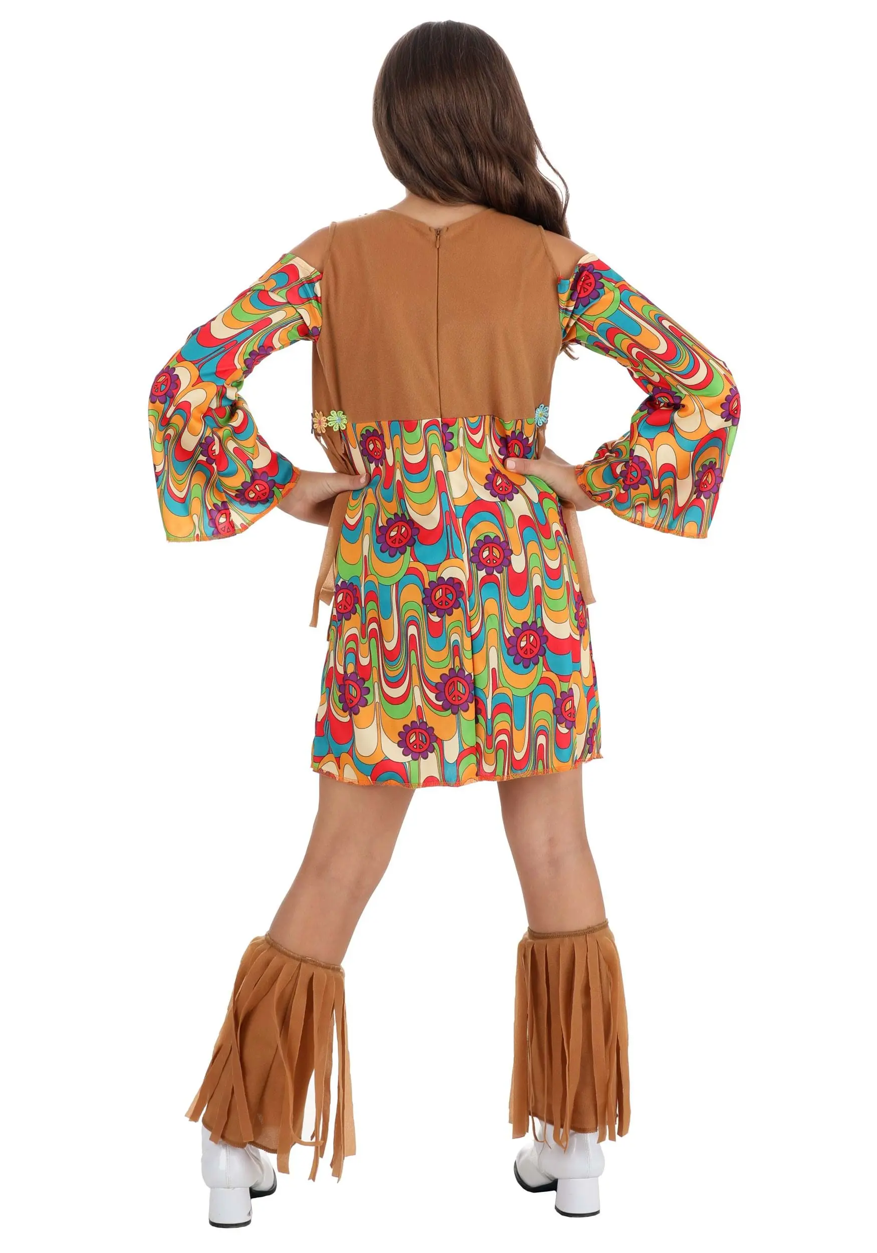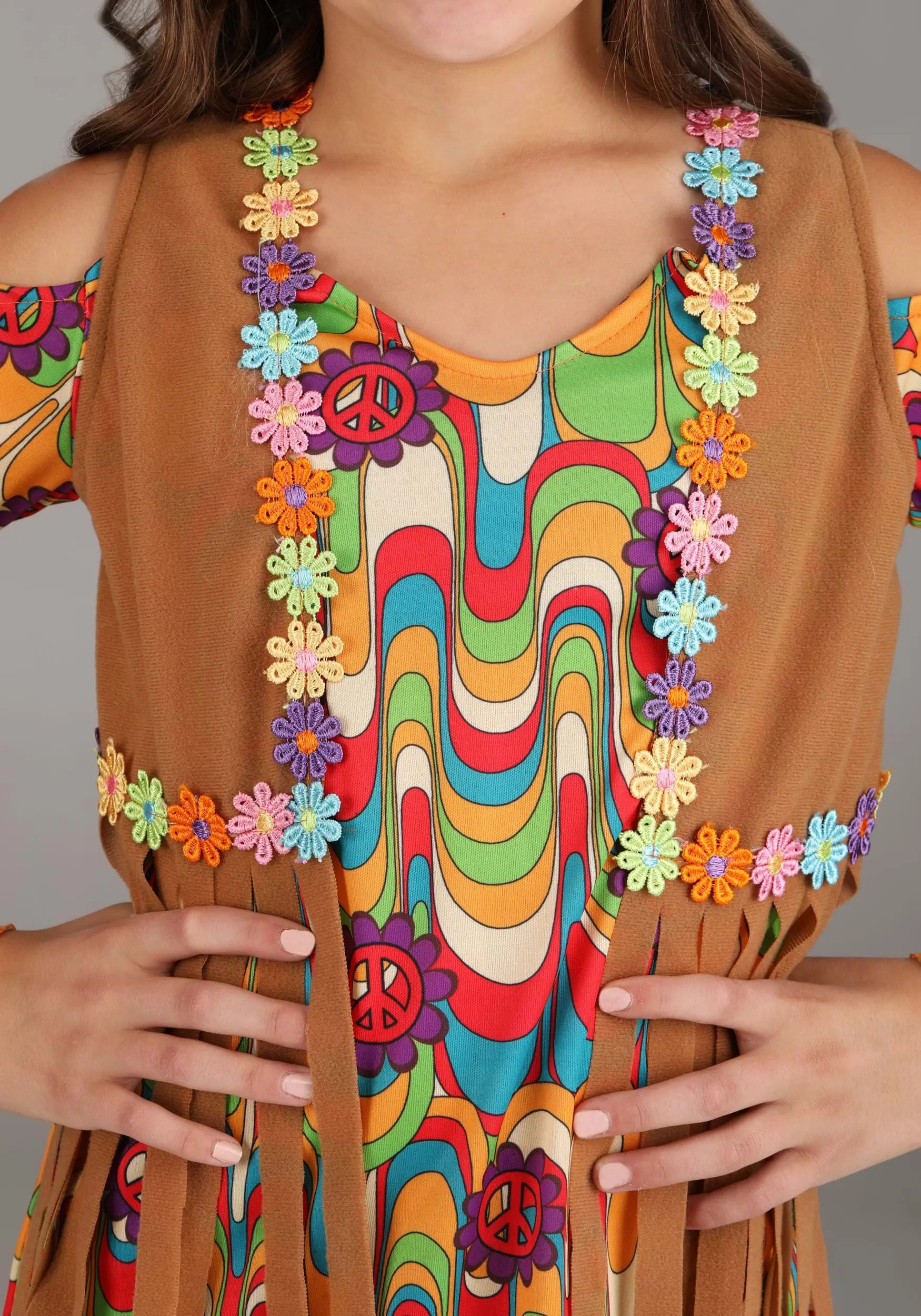 This is an exclusive Girl’s Woodstock Flower Hippie Costume.