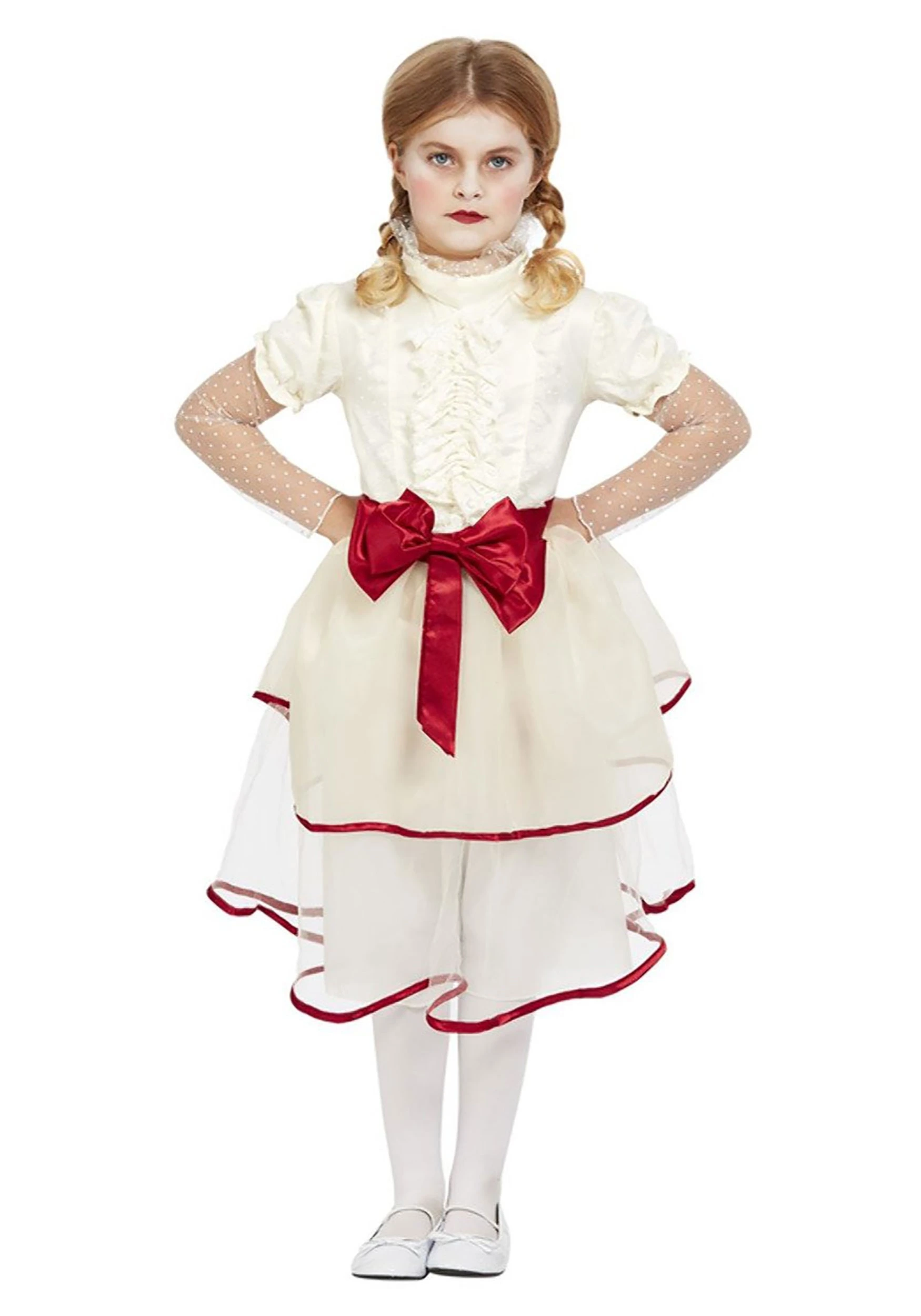- Dress is multi-layered, the top layer is a cream color and the bottom layer is white