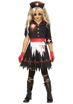 - Decorative buttons on bodice front, sewn-in front waist sash & jagged apron