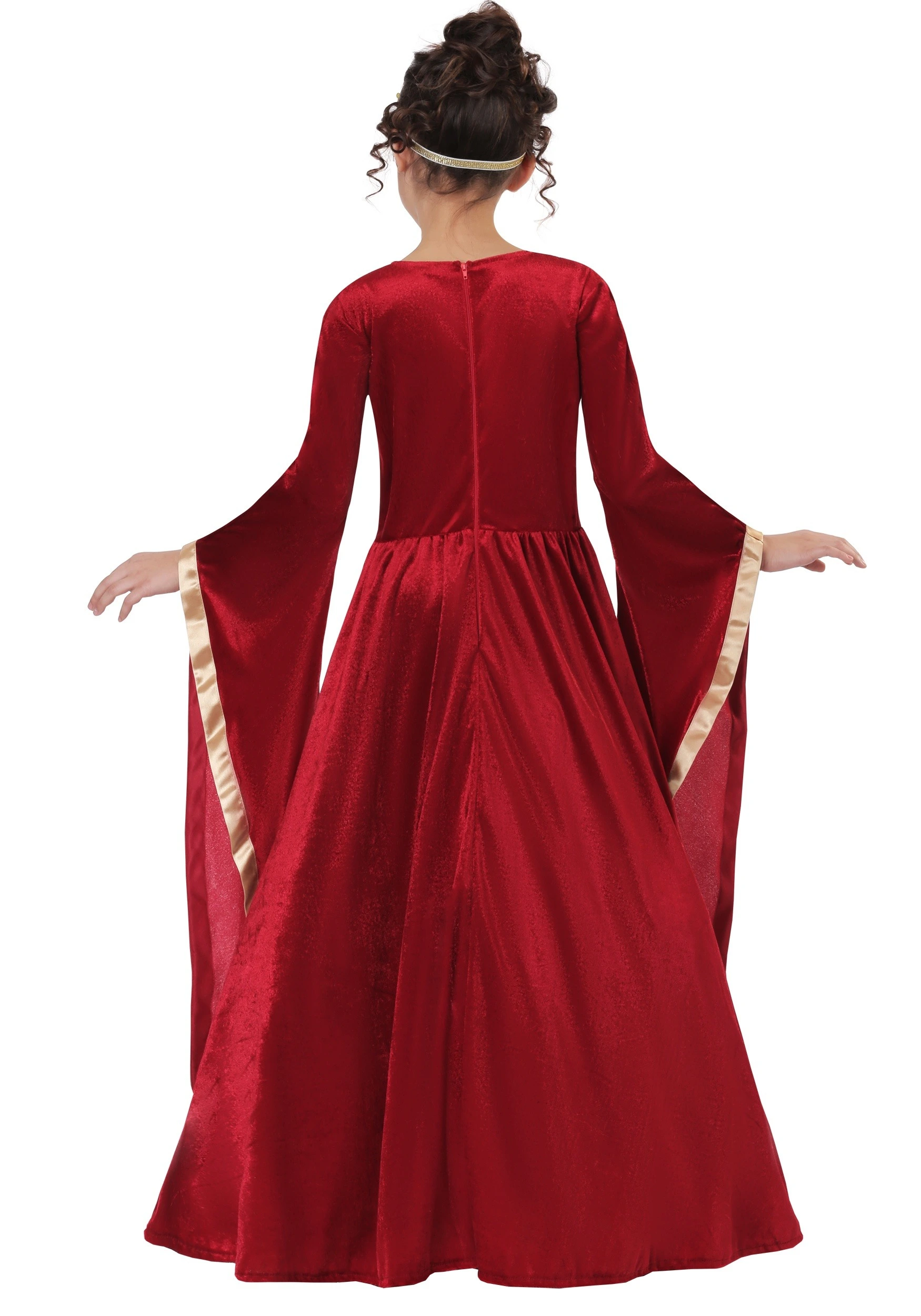 Fortunately, with all the fun of old world acts, you still won’t have to worry too much about being in style. Our team of designers practically live at the Renaissance Festival and have this exclusive Maiden Costume that will have your kid feeling like a true to life fairy princess. This maroon dress is full-length and features a velvet overdress with brocade inset, oversized sleeves and golden trim at an empire waist. The golden crown brings this from a lovely look to an exquisite medieval marvel or royal Renaissance wear!