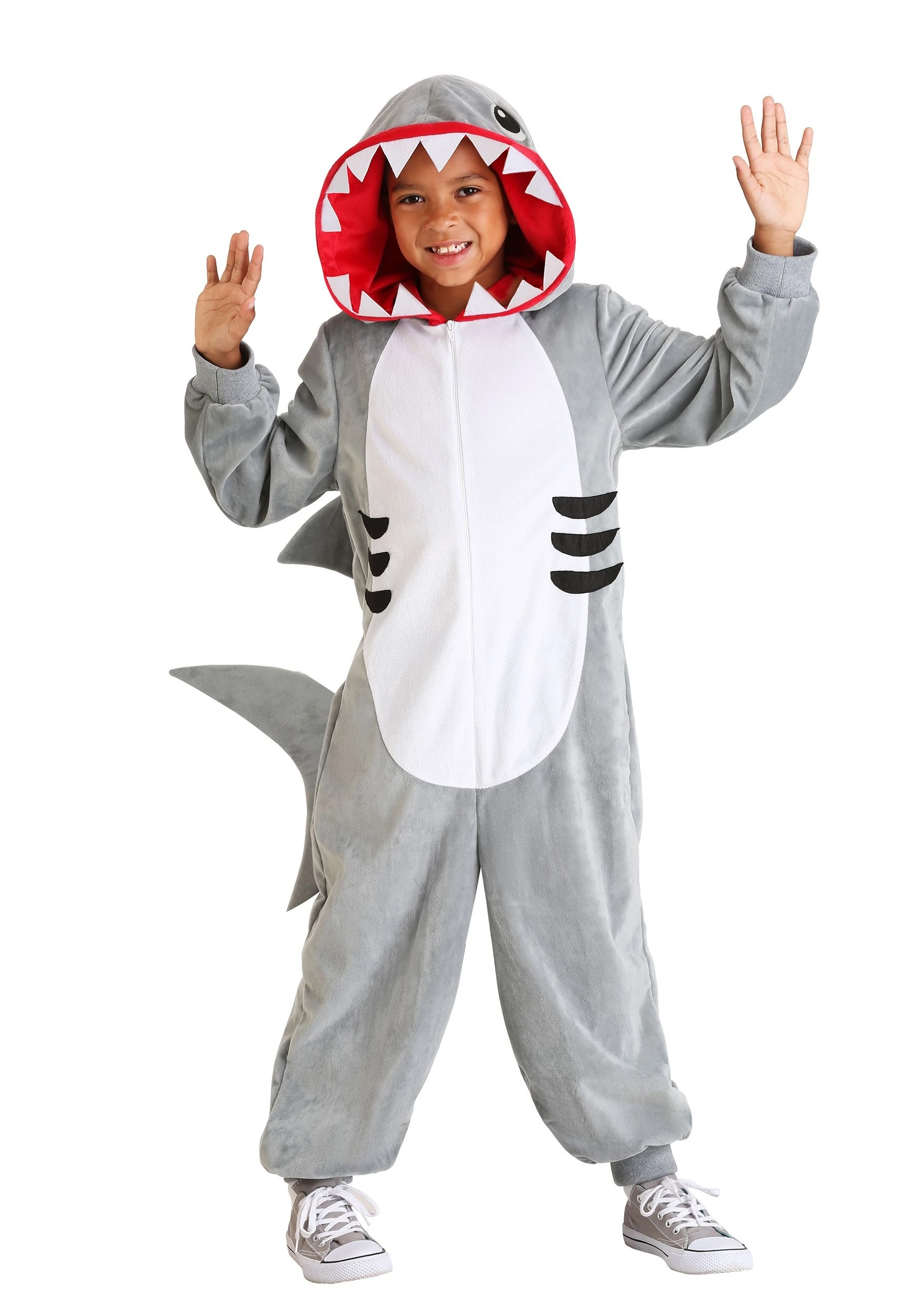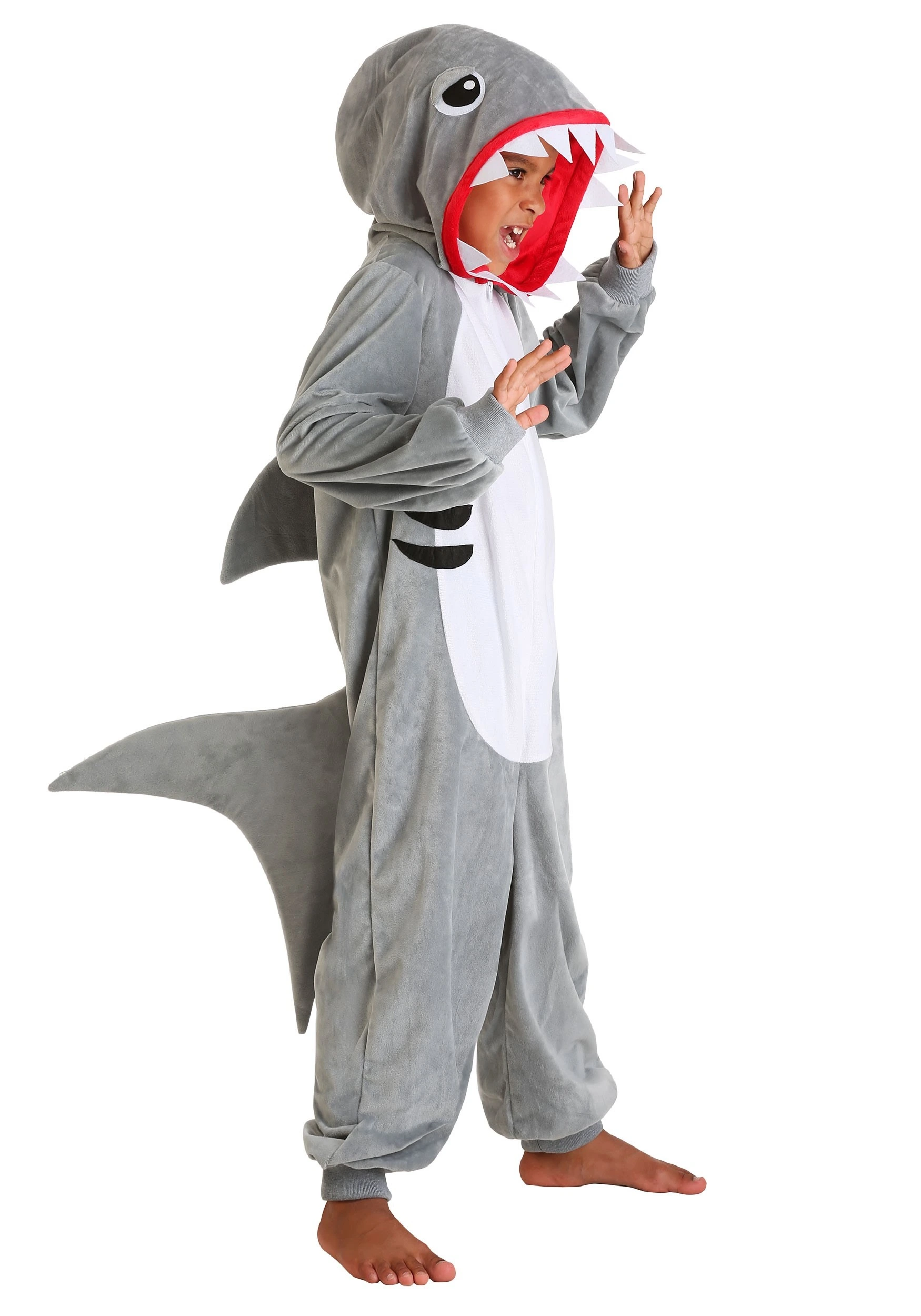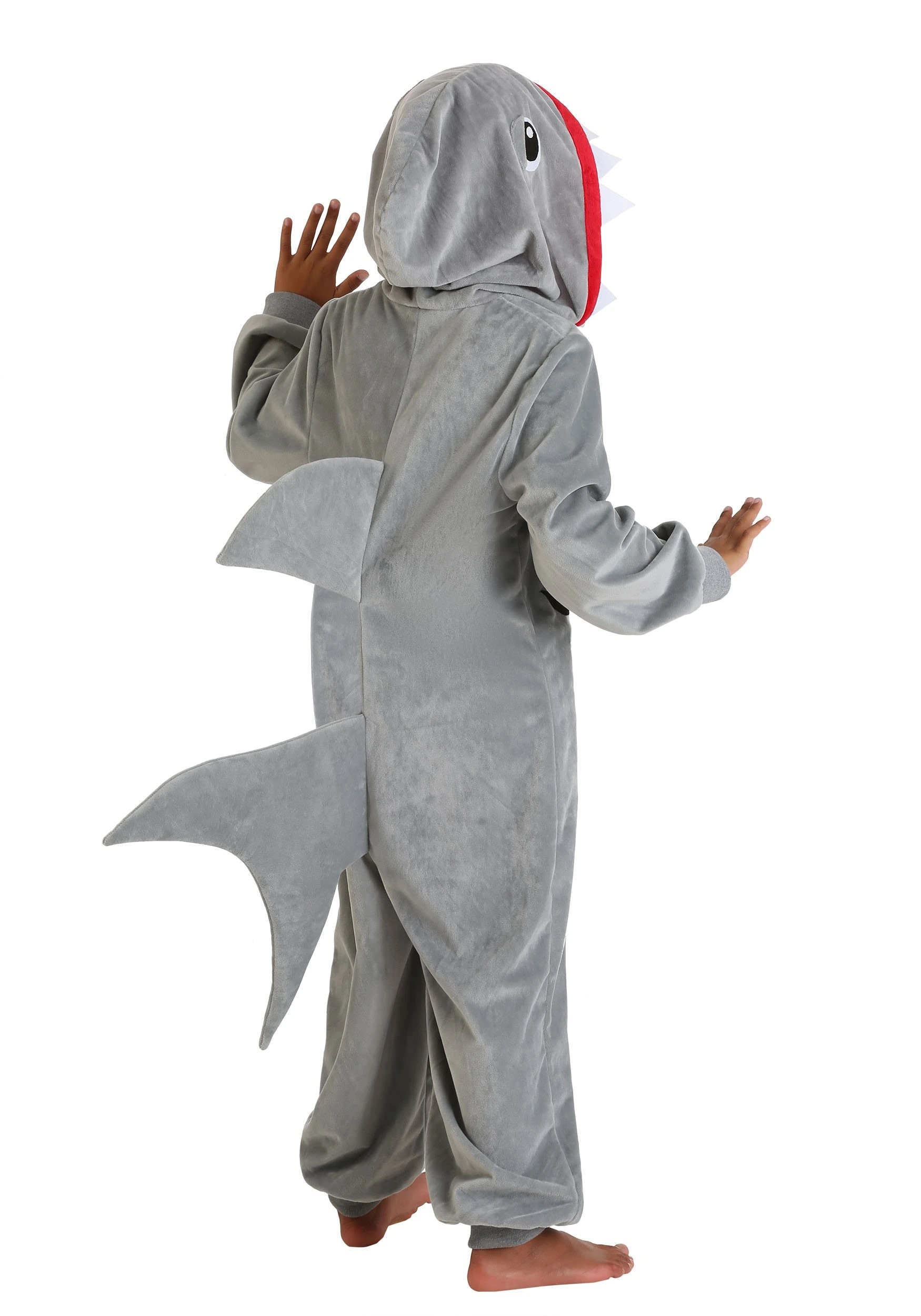 Start singing your little hearts out when your darling shark-lover zips up this Shark Onesie. This is a baggy fit one-piece costume that our own design team put together after they just couldn’t get sharks out of their minds! The whole thing is made of crazy comfortable microfleece and features a gray color scheme with a white belly. The inside of the giant hood is red and black with white felt teeth along the perimeter. The fins and tail have light foam on the interior to maintain their shape and the cuffs at the wrist and ankles are rib knit for a comfy fit. Your tyke will be dancing in no time!