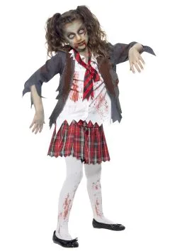 It doesn’t matter if your dog eats your homework, or if you eat your teacher, you still have to go to class! That’s what we were always told when we were growing up, and it still applies today. At least these days, even brain-chomping zombies can look cool when they have to go to school, and your kid can look just like one of them in this creepy Zombie School Girl Costume!