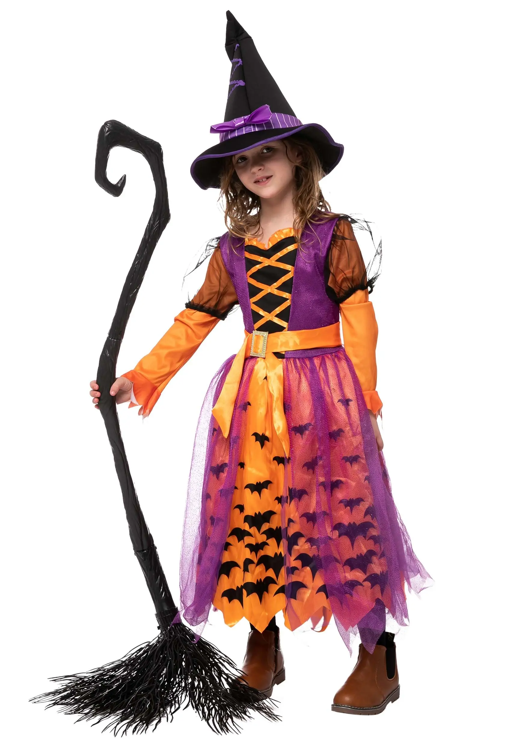 This is a Girl’s Light Up Orange Bat Witch Costume.