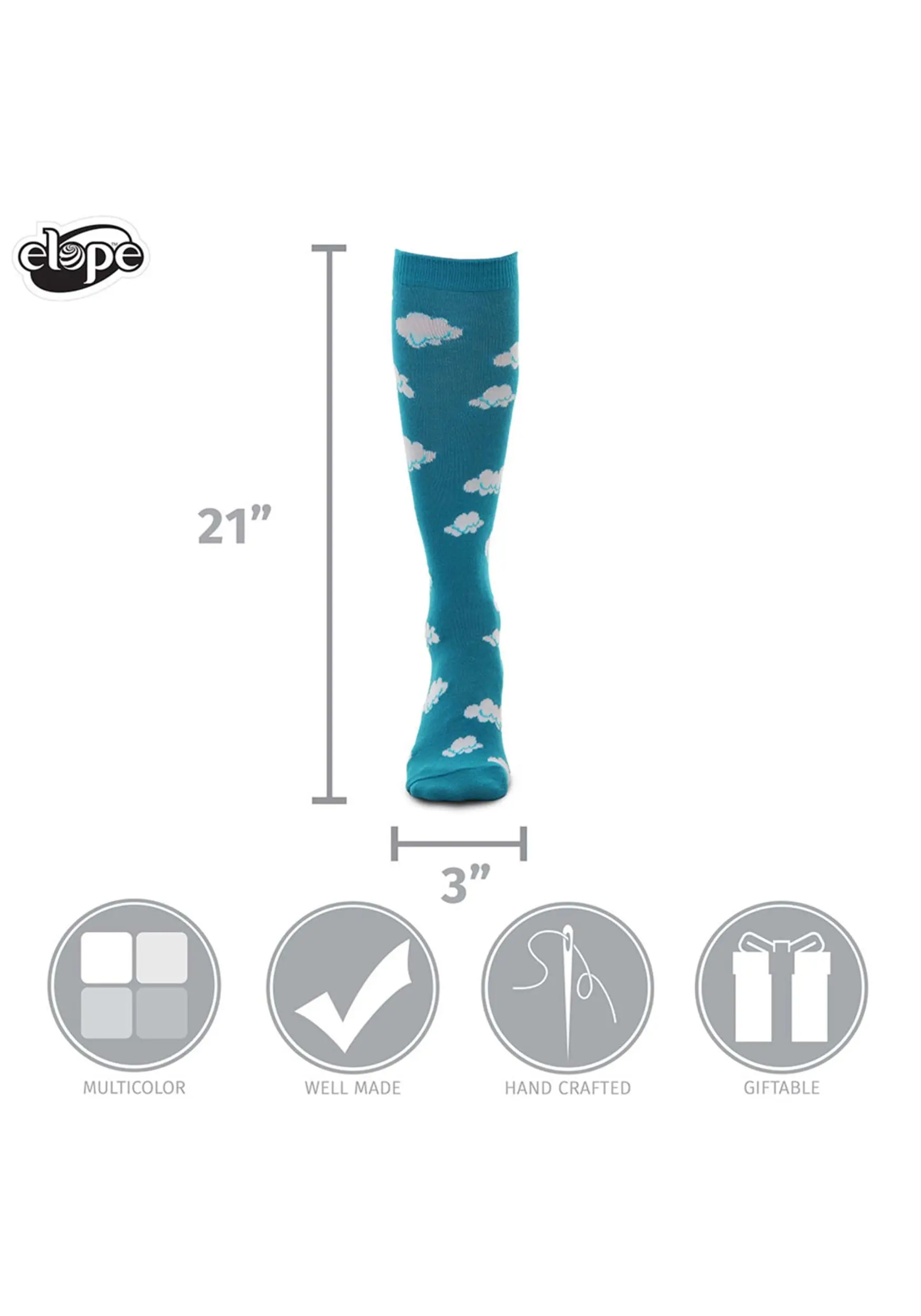 - Knee-high socks are 18″ long