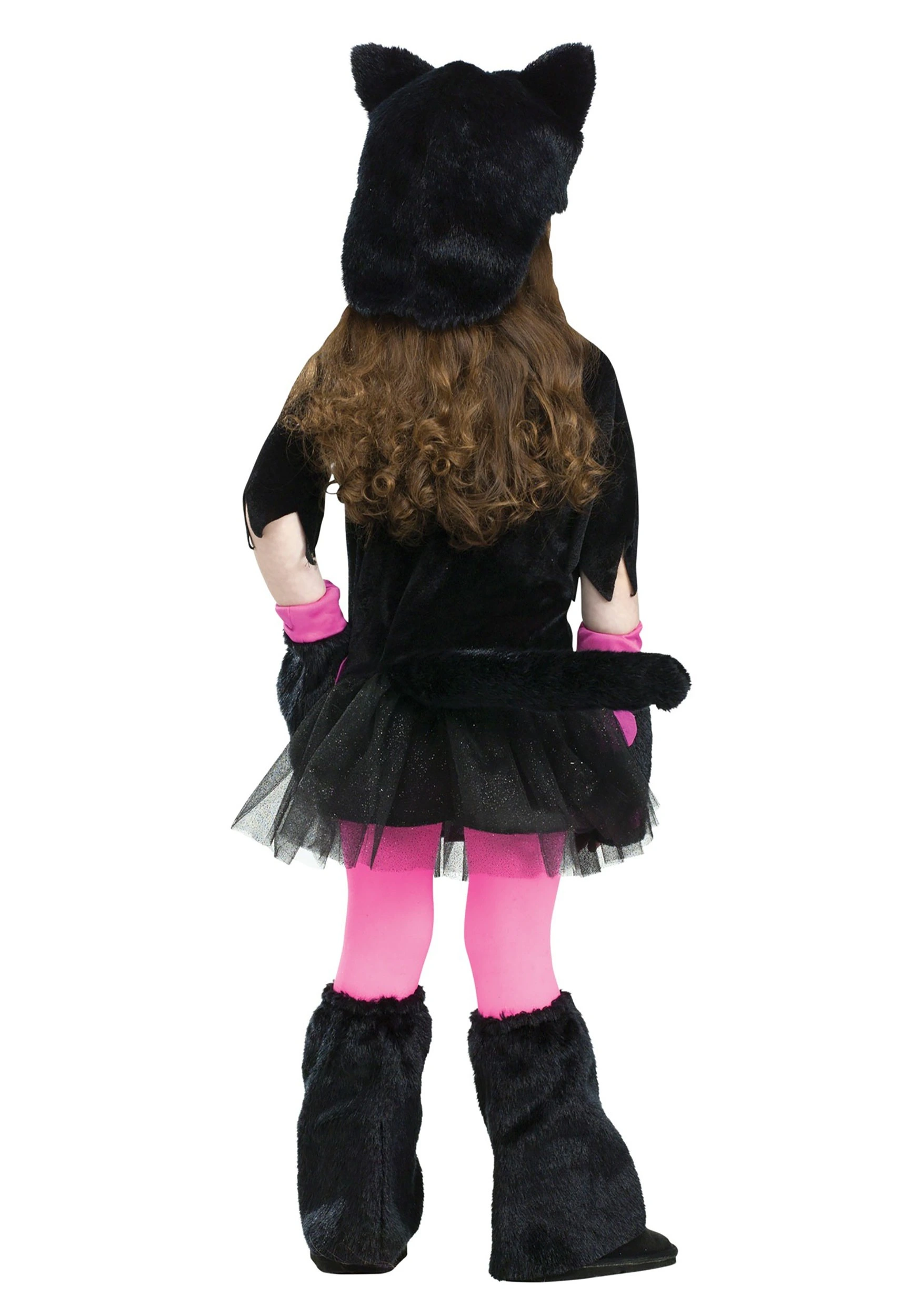 Soft, black fleece material contrasts with pink accents and a pink belly, not to mention a couple of pink bows too! A tulle skirt overlay adds some fantastic style, and when she pops on the character hood, she’ll be the real deal Miss Kitty. Meow!