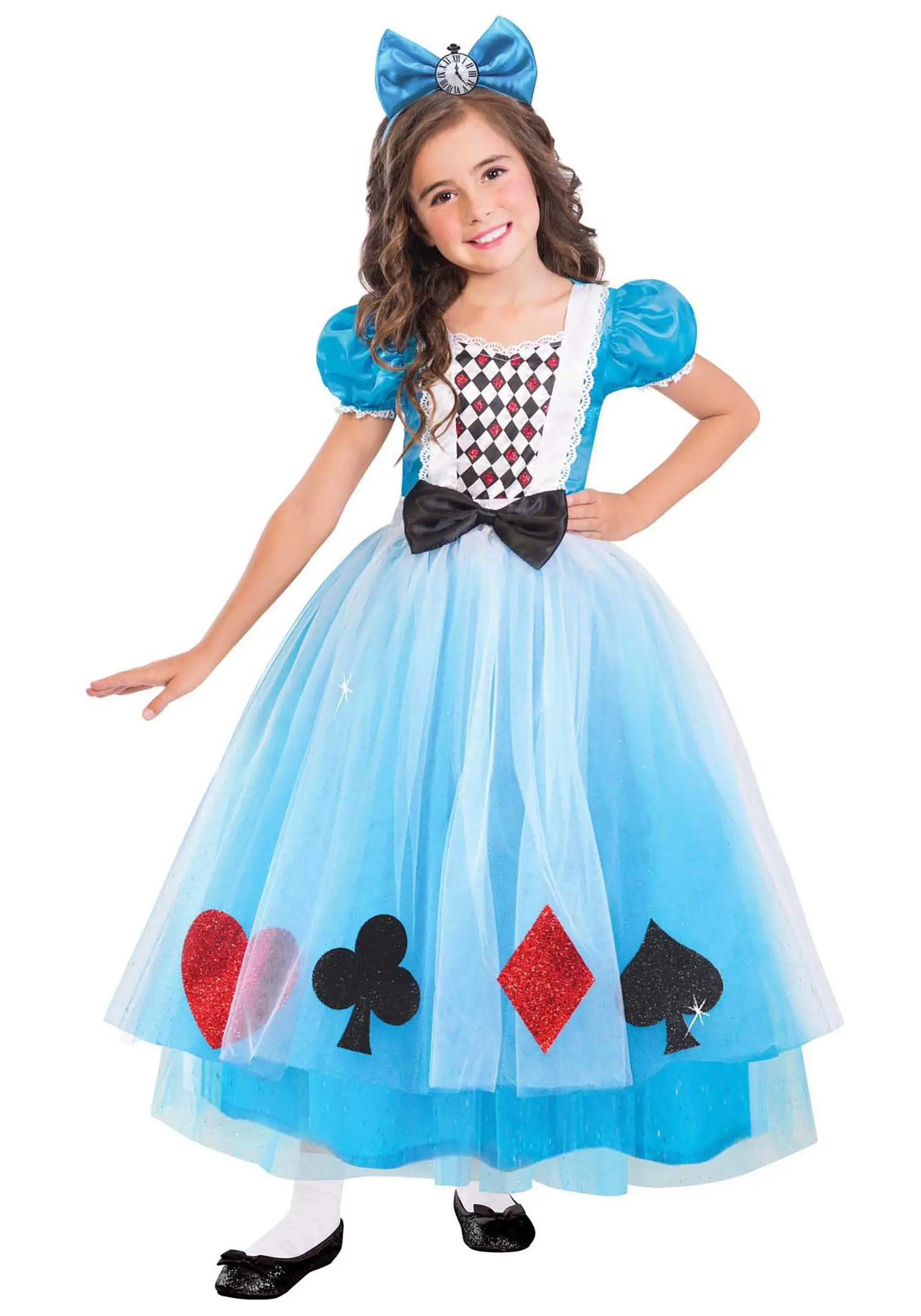 - Bodice inset has printed diamonds w/ glittery card suit symbols