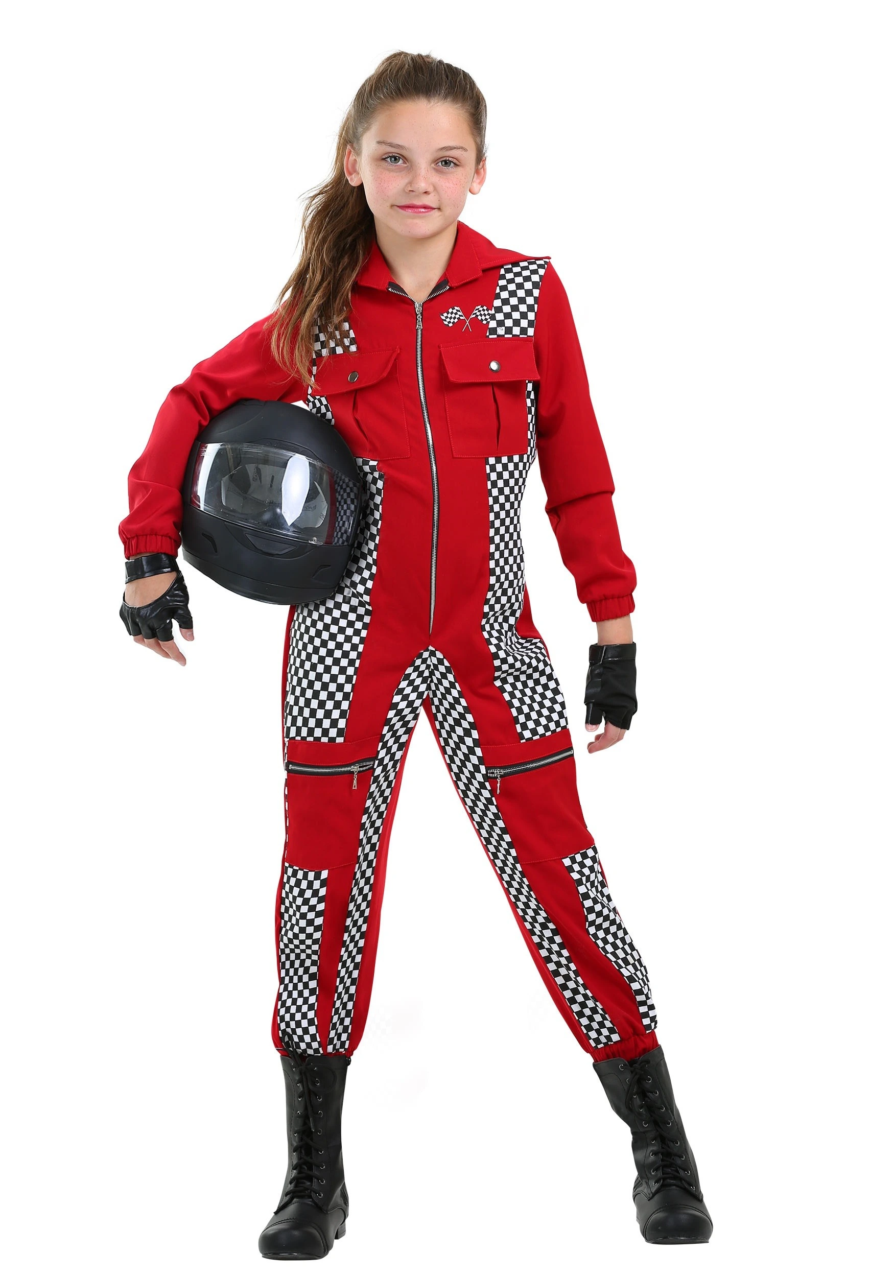 She’ll have the look of a professional driver when she has this elite racecar driver look. Styled like a suit that a real deal Formula One driver would wear, she’ll feel ready to race some laps in this slick set up. And with a jumpsuit, belt, and fingerless gloves, this set has everything she need to be ready to go!