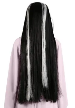 This adult wig helps you create your own Munsters inspired look! It’s made with black and white synthetic fibers designed to recreate the style from the classic television series. It fits with an elastic mesh cap on the interior, so it’s a one size fits most style. Pair it up with our Lily Munster costume for full effect!