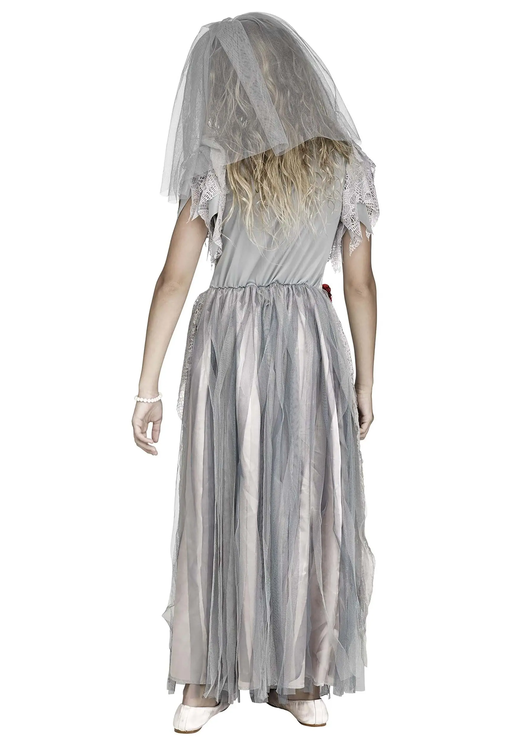 - Short sleeves have jagged jersey base layer w/ jagged lace overlay & printed blood stain